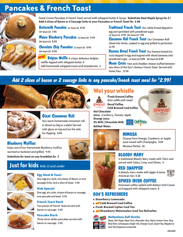 Breakfast Buffets Served Saturday and Sunday morning 8-11AM at Old Town and Waterville and Sunday morning only 8-11AM at Bangor, Lewiston, and  Presque Isle. The buffet is not currently offered in Ellsworth.