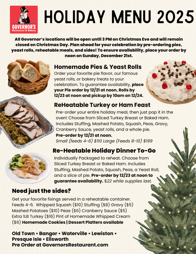 All Governor’s locations will be closing at 3pm on December 24th, (Christmas Eve) and will be closed Christmas Day.